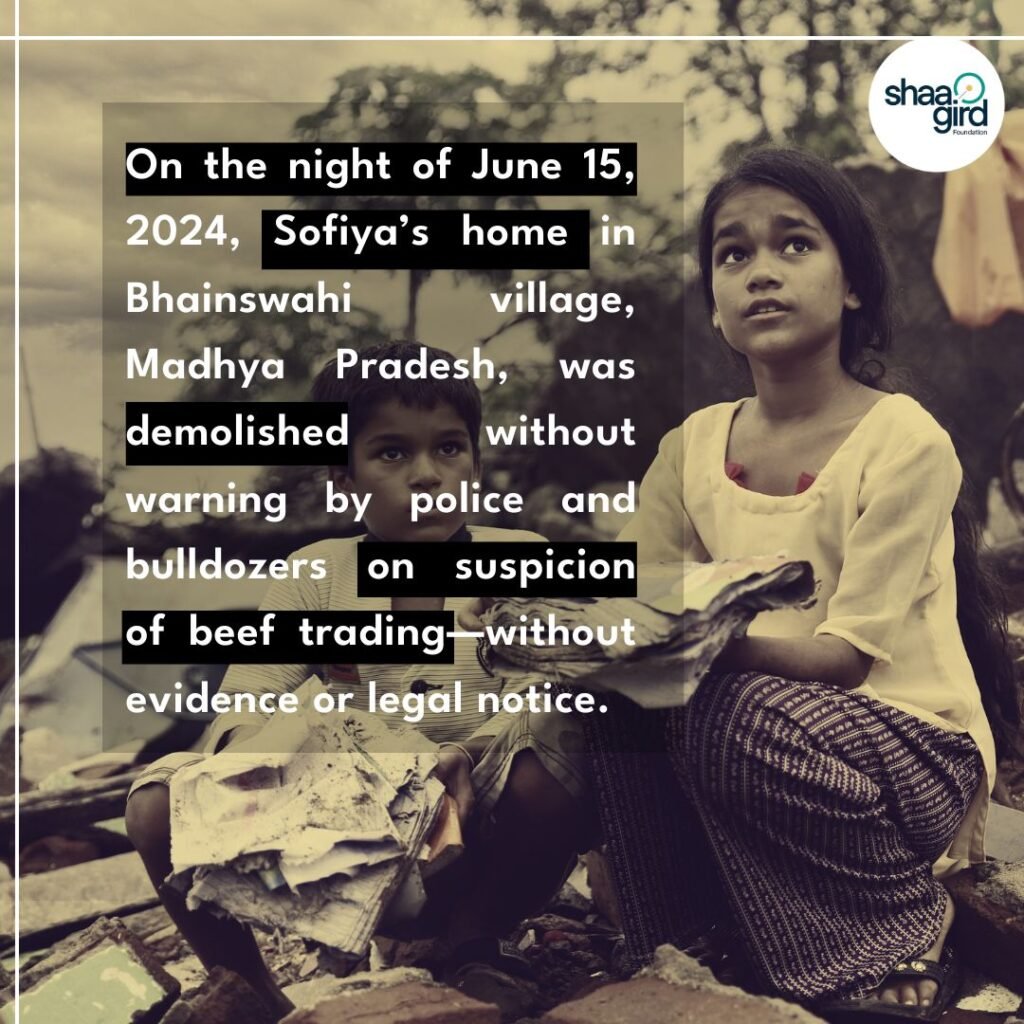 On the silent night of June 15th 2024, when Sofiya was sleeping peacefully with her school bag kept on her bookshelf, ready to be taken in the morning, a group of policemen, accompanied by bulldozers, came and demolished her house without a warning.