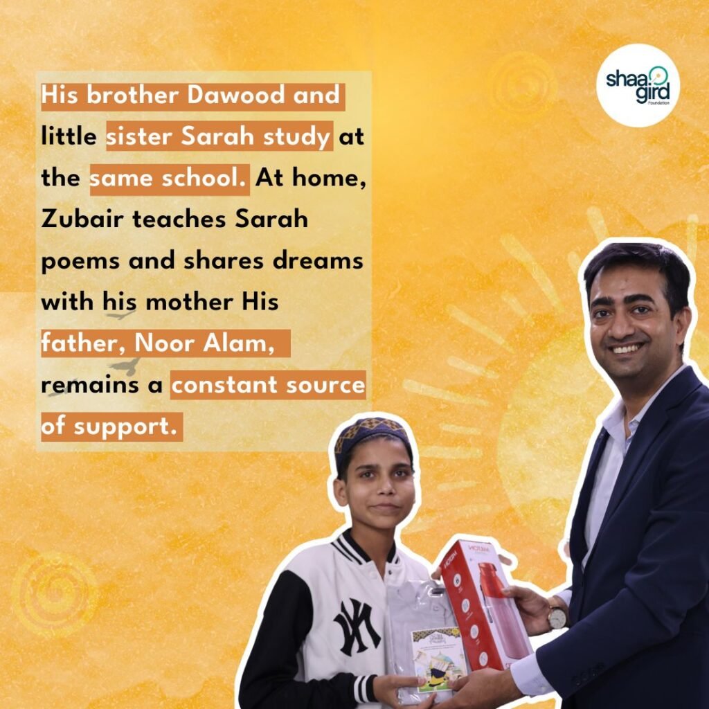 His father, Noor Alam, is the motivational force behind the success of the family. He helps the members in whatever way he can.Zubair sees the playground of Sunrise Public School to be like his favourite cricketers. He embarks on a journey of education and skill development.