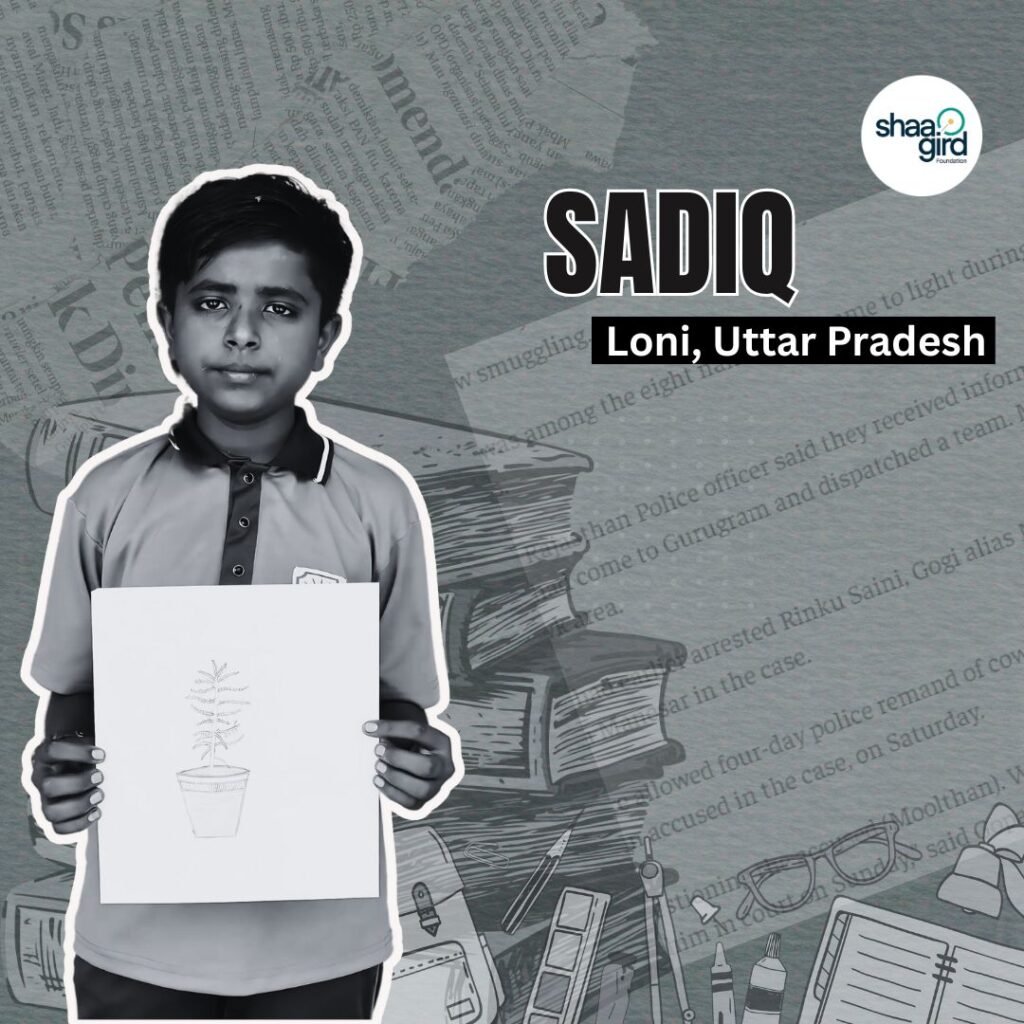 Under the shade of Sunrise Public School, Sadiq’s knowledge has surged incredibly. He is well versed in English, Hindi, Science, Math, and Computers. Known for his drawings, he’s always in demand for all the art competitions.