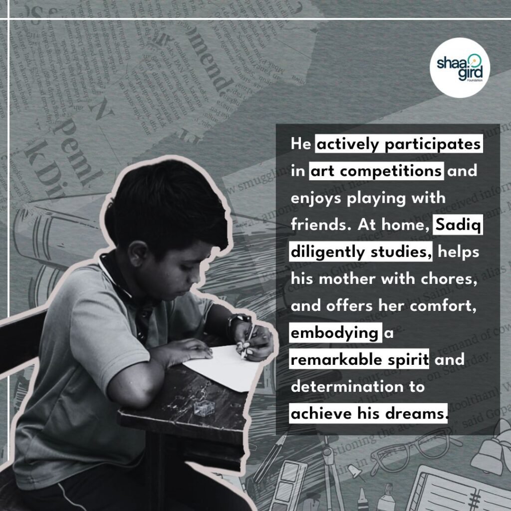 His life changed exquisitely in a matter of a few days when the Shaagrid Foundation swiftly intervened. It introduced him to the vibrant sides of life by enrolling him in Sunrise Public School. It is a relief school of the Shaagird Foundation that provides education to those who are deprived of it.