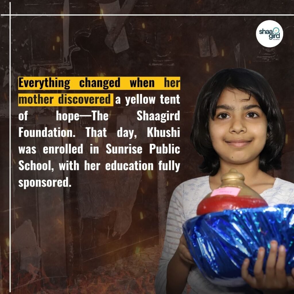 Her mother hurriedly took the forms that were being distributed, and she didn’t waste a second in filling out them, as a result of which her Khushi got enrolled in ‘Sunrise Public School.’ Shaagird sponsored her enrollment and education.