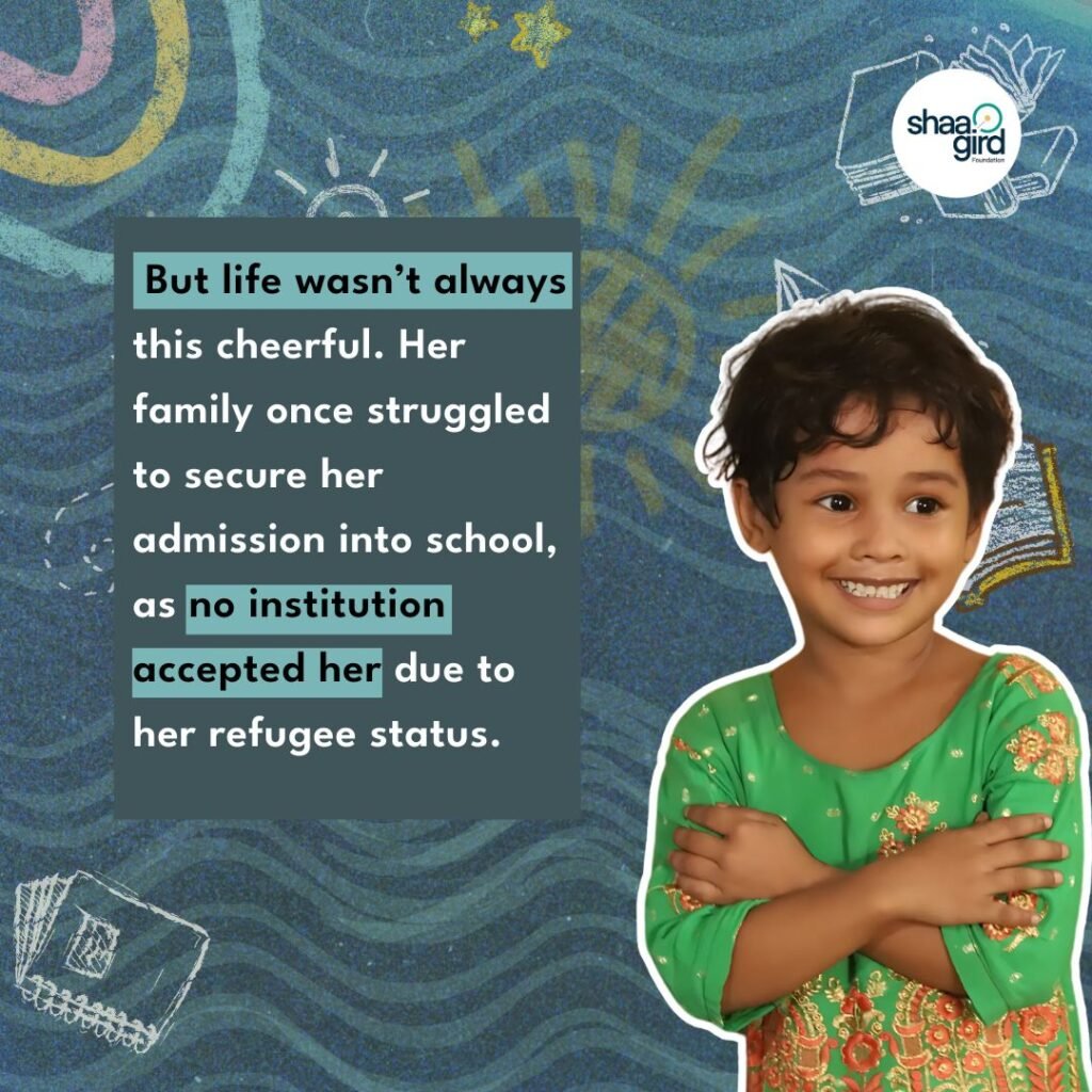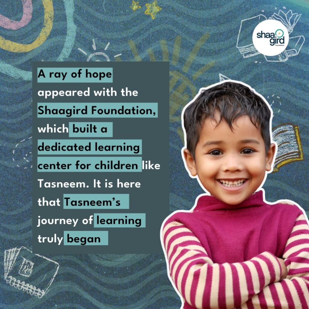 Tasneem’s enthusiasm for life and her excitement over her clothes, toys, and friends are daily reminders of the importance of our mission. At Shaagird Foundation, we are committed to ensuring that Tasneem’s smile never fades. Through continued support, education, and love, we aim to nurture every child like her, giving them the tools and opportunities to thrive.